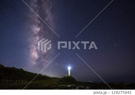直立する銀河と白い灯台