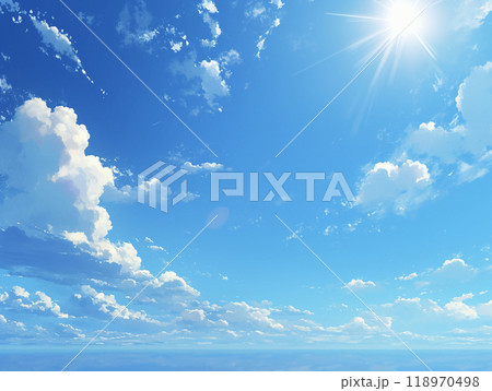 太陽と雲が浮かぶ夏の青空 AI画像