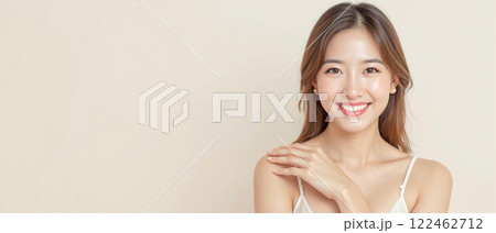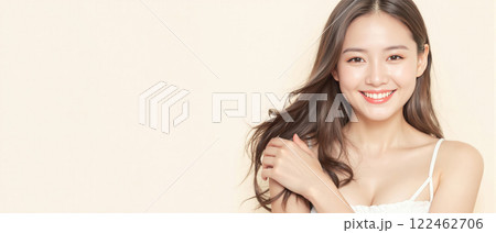Portrait of a beautiful young Asian woman with makeup and smooth skin