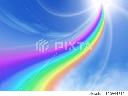 青空に抽象的な虹と光の3dイラスト背景