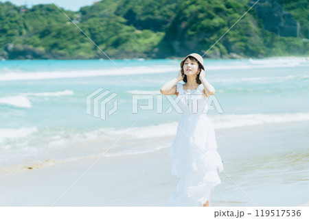 南国のビーチにいる美女