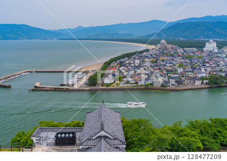 (佐賀県)唐津城天守から見る、唐津湾の遊覧船