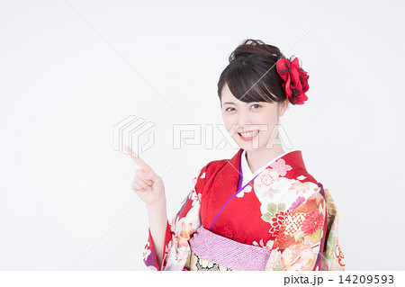 成人式前撮りイメージ 着物姿で舞う若い女性