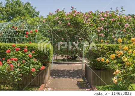 智光山公園のバラ園/アーチと満開のバラ/埼玉県
