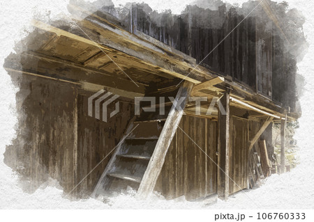 水彩画風 智頭宿 板井原集落 鳥取県八頭郡智頭町