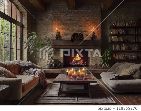 暖炉のある部屋 暖かいリビングルーム おしゃれな部屋 イメージ素材
