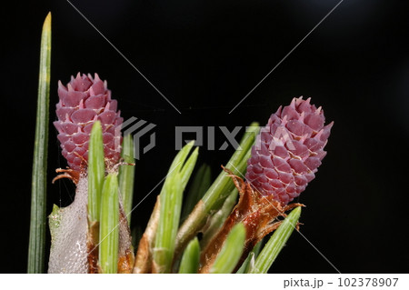 自然 植物 アカマツ、雌花です。初夏、新枝に先に二個ほどつきます。松ぼっくりの赤ちゃん