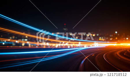 光の軌跡が走る未来的なスピード感ある抽象アート