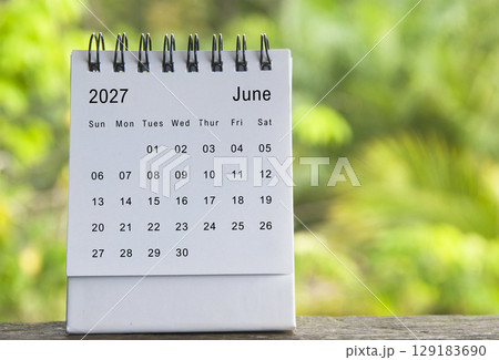 Close up of January 2027 calendar on wooden background