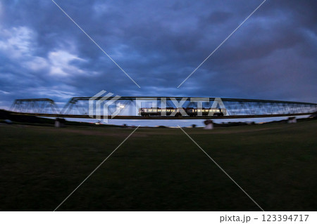【高徳線】夕暮れ時の吉野川橋梁を渡る特急列車