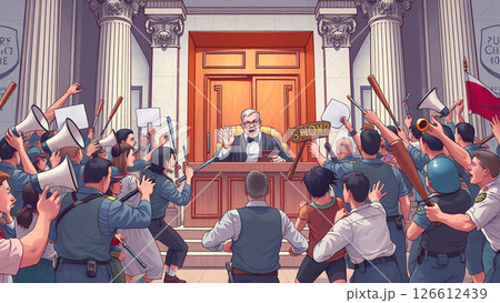 日本の裁判所になだれ込む民衆