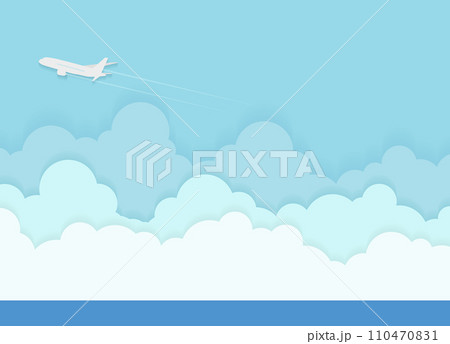 雲の上を飛ぶ飛行機のイラスト