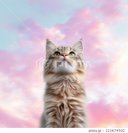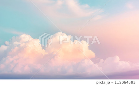 ピンクとブルーの淡い雲、夢かわいいグラデーションの空(AI生成画像)