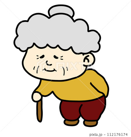 腰が曲がり杖をつくおばあちゃん(老婆)