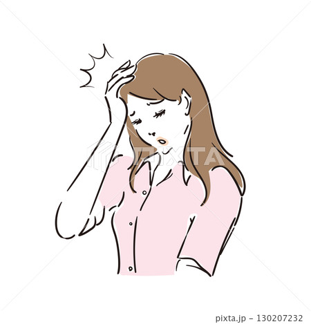 体調不良 頭痛 頭をおさえるミドル女性