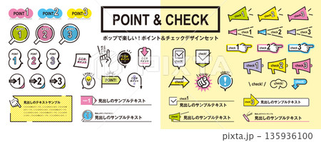 シンプルで使いやすい!ポイントとチェックの素材セット/あしらい、見出し、パーツ、装飾