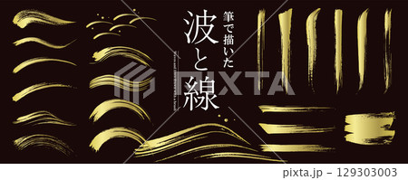 使いやすい! 筆で描いた和風の「波と線」素材セット(ベクターイラスト)/ゴールド