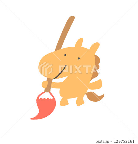 大きな筆を持つ白馬 書き初め 書道 正月素材