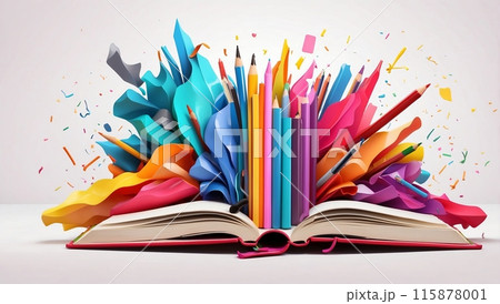Stack of books with colorful covers on vibrant background, symbolizing knowledge and diversity