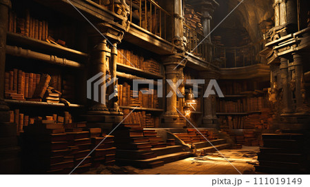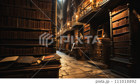 古めかしい本でいっぱいの図書館の館内のイメージ風景「AI生成画像」