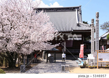 春の四国霊場第72番札所「曼荼羅寺」本堂前の桜とお遍路さん