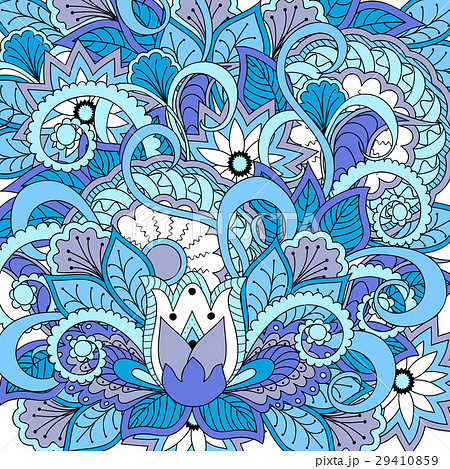 blue pattern with mandalas and flowers