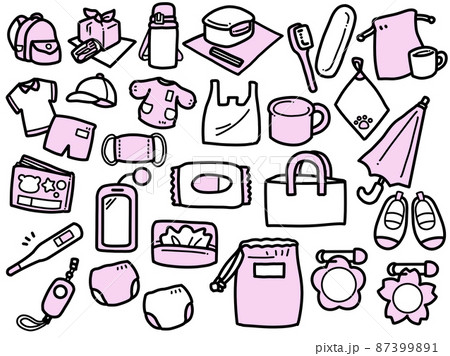 非常用持ち出し袋と中身のイラストセット