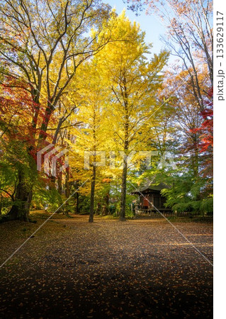 筑西市の紅葉したもみじに囲まれた最勝寺薬師堂