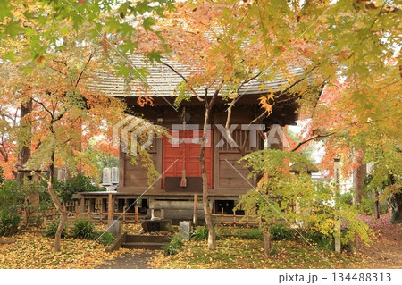 筑西市の紅葉したもみじに囲まれた最勝寺薬師堂