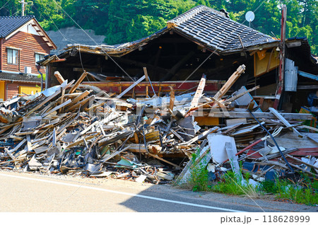 能登半島地震 震災後のつぶれた家屋 穴水町
