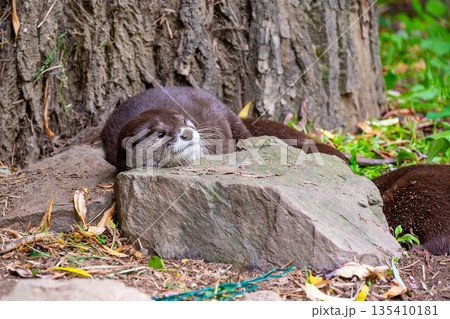 The otter (latin name Aonyx cinerea) relaxation on the ground.