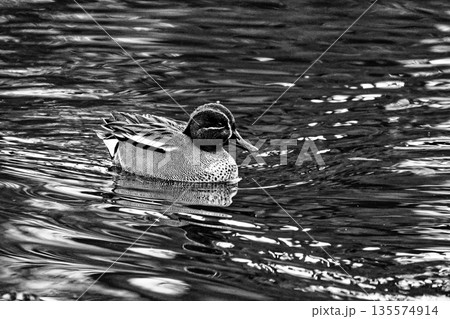 水辺のカモ科コガモ♂