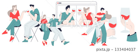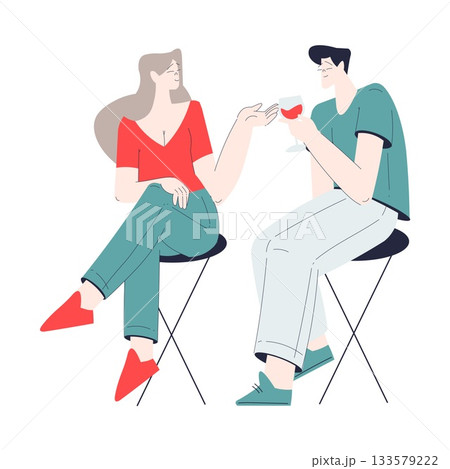 Man and Woman Romantic Couple Drink Wine in Glass Enjoy Love Story and Relationship Vector Illustration