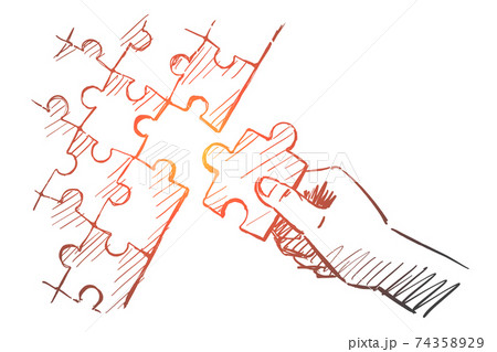 Hand drawn human arm completing puzzle