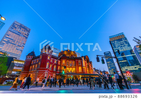 日本の東京都市景観 東京駅の赤レンガ駅舎や帰宅するビジネスマンやOLら。コロナ禍は今も…=4月12日