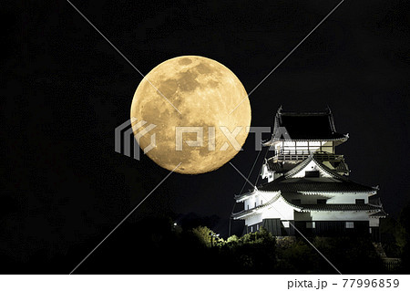【愛知県】犬山城と満月(イメージ素材)
