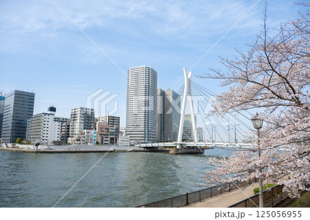 東京都中央区佃 隅田川沿いの桜と中央大橋