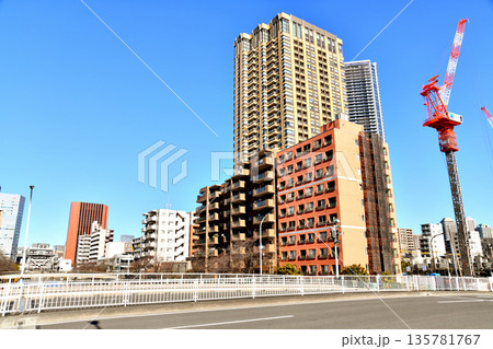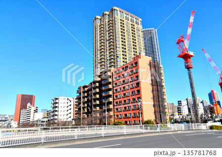 東京の都市風景 月島 もんじゃストリート周辺の風景