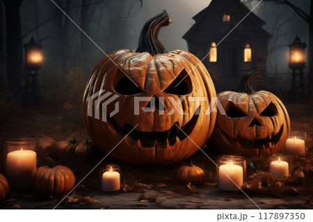 Halloween Halloween with orange pumpkin, beautiful background for advertising, fun on the scariest night.