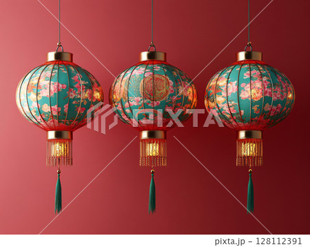 Glowing red traditional Chinese lanterns and lamps for celebration. Traditional Chinese red colored lanterns. AI Generated.