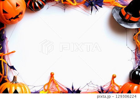 Blank Halloween card background decorated with pumpkins and autumn leaves for festive celebration