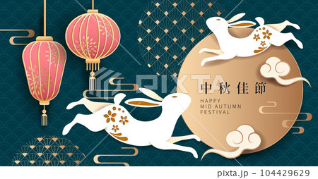 Mid-autumn festival design. rabbit and lantern.