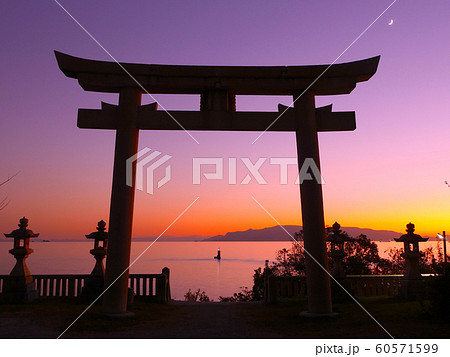 瀬戸内海の鳥居から昇る満月の風景イメージ