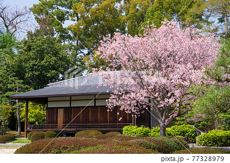 京都 二条城 清流園の香雲亭(こううんてい)と桜