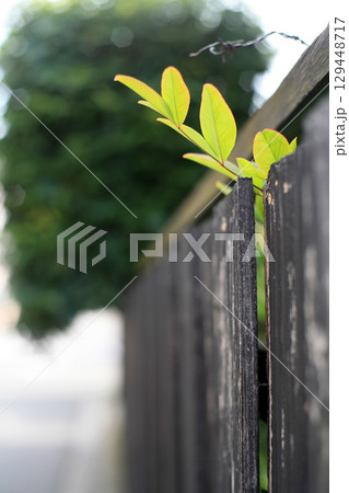 板塀の若葉