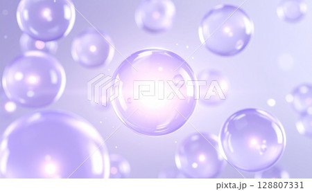 透明な水球に浮かぶ分子構造/スキンケア・美容・科学イメージ 背景素材