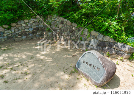 有岡城址にある整備された石垣のある風景 【日本の城跡】