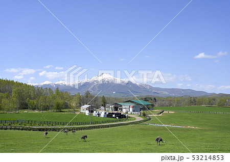 羊蹄山バックのダチョウ牧場「北海道」