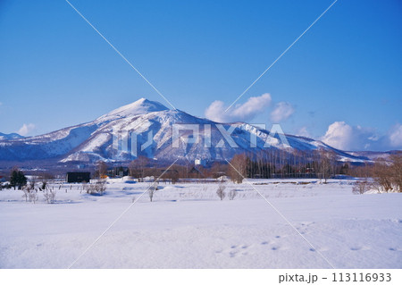 冬の有島記念公園からニセコアンヌプリを臨む