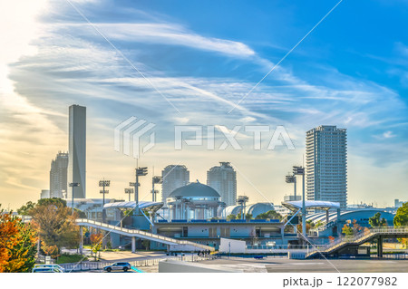 国際展示場駅周辺の街並み 有明コロシアムと高層ビル群